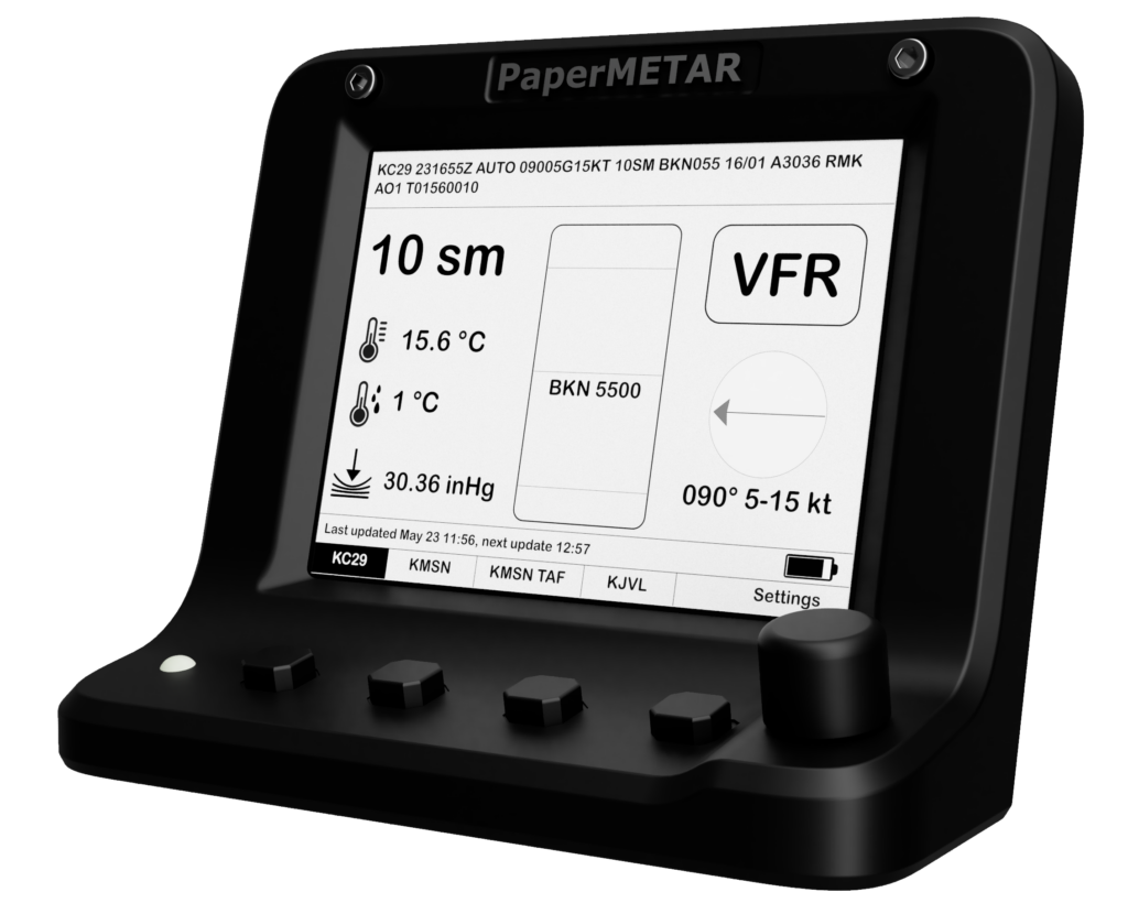 Lately I have been working on an aviation weather device I call PaperMETAR. It’s a desk accessory geared towards piltos and aviation enthusiasts. I am excited to announce that I am launching it on Kickstarter this coming Tuesday, January 13! You can see more at PaperMETAR.